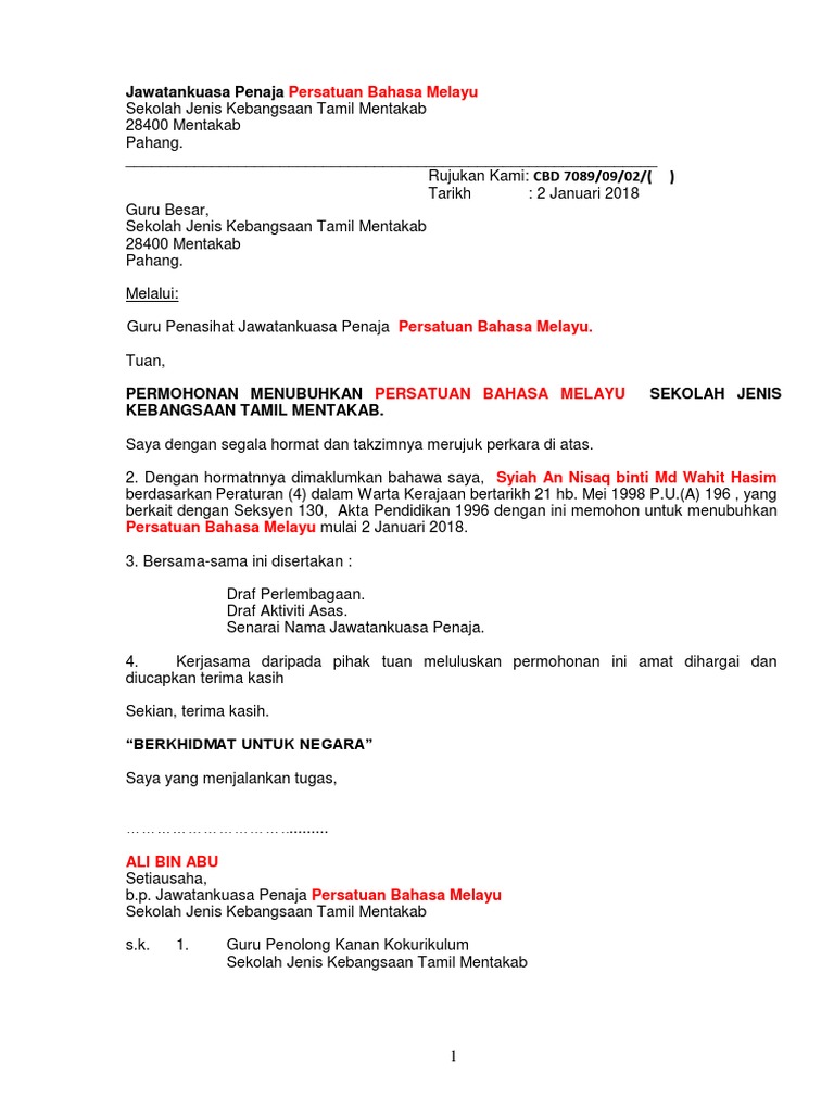 Contoh Surat Permohonan Dan Perlembagaan Persatuan Bahasa Melayu Pdf